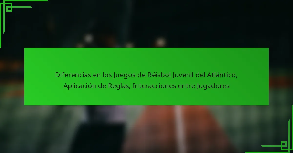 Los partidos de béisbol juvenil en la región atlántica presentan diferencias únicas en las reglas, estrategias de juego y estructuras organizativas que los distinguen de otras áreas. Estas distinciones no solo influyen en las interacciones entre jugadores y estilos de entrenamiento, sino que también moldean las experiencias generales de los jóvenes atletas. Comprender la aplicación de las reglas y el énfasis en el respeto y la comunicación entre los jugadores es esencial para fomentar un ambiente positivo y de apoyo en el juego.