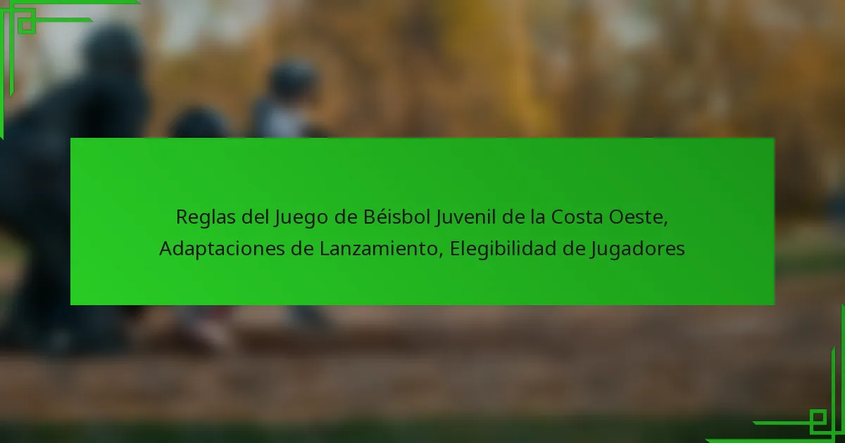 Los criterios de elegibilidad para los jugadores en el béisbol juvenil de la Costa Oeste suelen incluir límites de edad, requisitos de residencia y procesos de registro específicos. Comprender estos factores es crucial para jugadores y padres para asegurar la participación en las ligas locales.